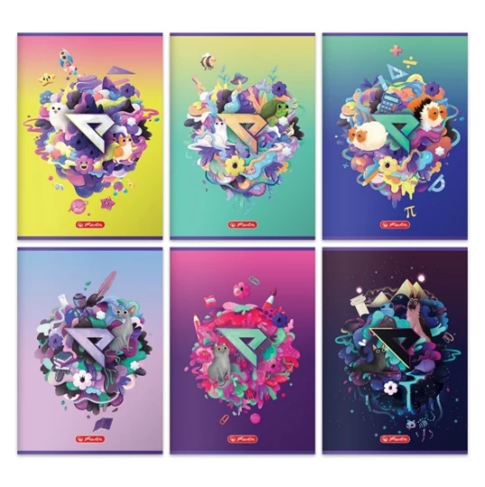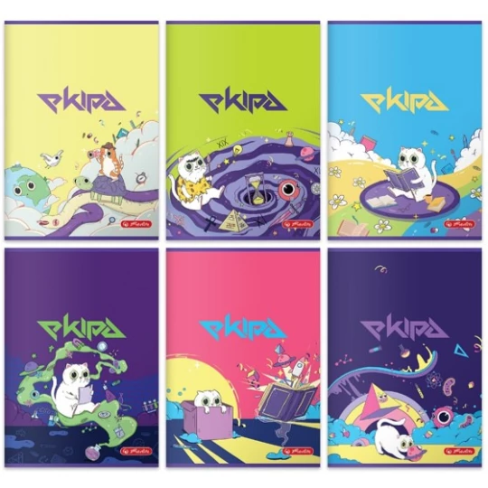 Okladki zeszytów wykonane są z grubego papieru 200 g. Dodatkowo okladki są mile w dotyku dzieki pokryciu folią soft touch. Na okladce wewnetrznej znajduje sie grafika wraz z etykietą do wpisania danych wlaściciela zeszytu.