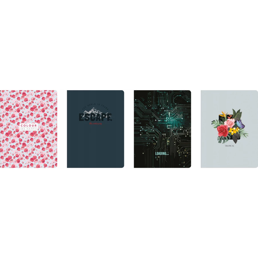 - zeszyt z miękką okładką, lakier UV
