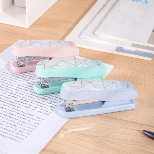 Nasz zszywacz serii Macaron marki Deli to produkt uniwersalny, który sprawdzi się w każdym miejscu - w szkole, pracy czy biurze. Nie tylko jest funkcjonalny, ale także pięknie wykonany, dzięki geometrycznemu nadrukowi na górze obudowy i dostępności w trzech pastelowych kolorach.