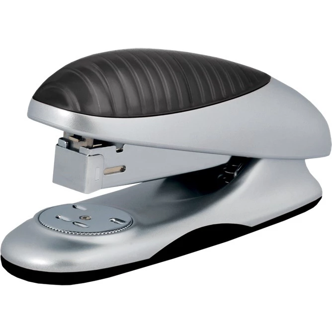 Zszywacz w obudowie z tworzywa sztucznego, cześci mechaniczne metalowe. Zszywanie zamkniete i otwarte. Dostosowany do zszywek o rozmiarze 24/6 mm i 26/6 mm. Zszywa do 25 kartek. Glebokośc wsuwania kartek: 55 mm. Pojemnośc magazynka: 100 zszywek.
