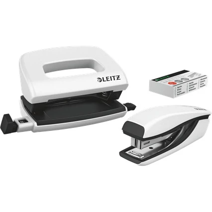Zszywacz + dziurkacz LEITZ WOW mini 10 kartek biały metalik 55612001