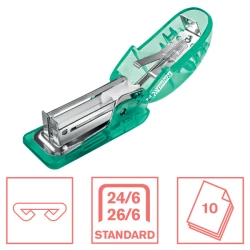 Ten lekki, kompaktowy zszywacz Rapid Colour'Breeze moze zszywac do 10 kartek (80 g/m2) jednocześnie.