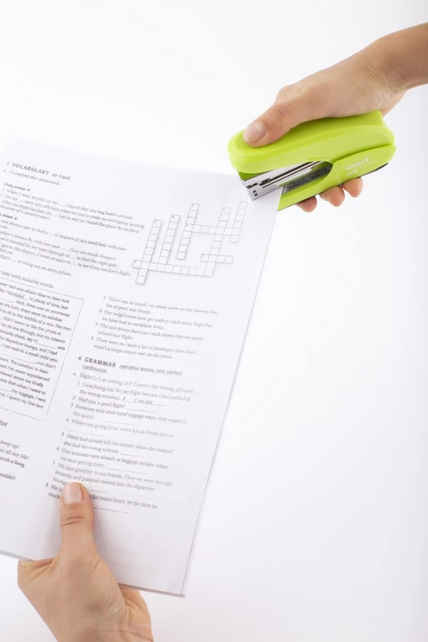 Poręczny zszywacz z redukcją siły zszywania do 60%, dzięki której zszywanie większej ilości kartek staje się łatwe i przyjemne. Zszywacz wykonany jest z trwałego tworzywa, wewnętrz posiada metalowy mechanizm. Maksymalna ilość zszywanych kartek: 30 Maksymalna głębokość wsuwania kartek: 60 mm Ilość zszywek w magazynku: 70 Rozmiar zszywek: 24/6, 26/6